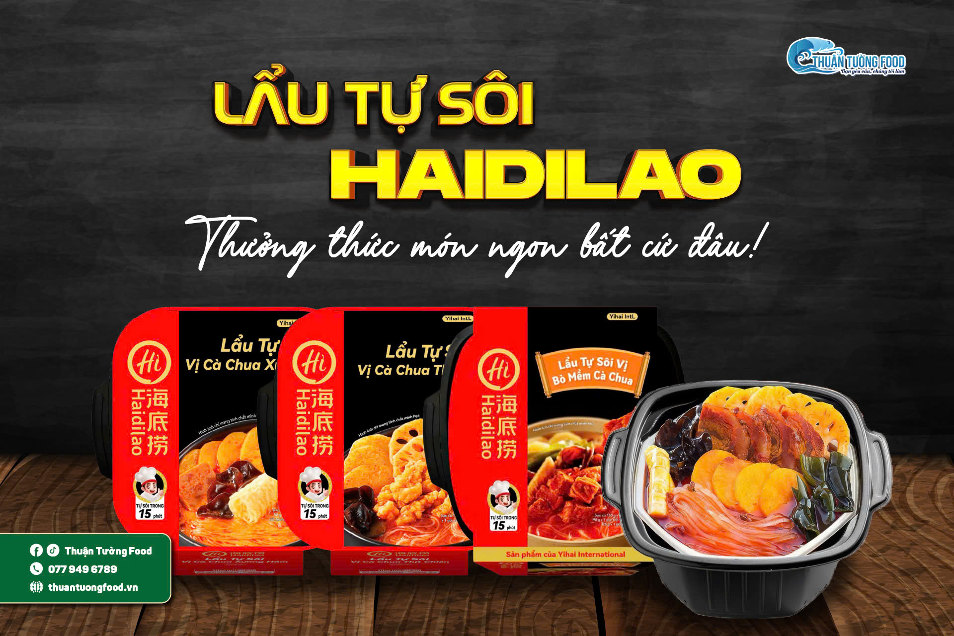 Lẩu Tự Sôi Haidilao là món ăn tiện lợi, giúp bạn thưởng thức lẩu nóng hổi mọi lúc mọi nơi mà không cần bếp hay điện. Chỉ cần mở gói, thêm nước và chờ vài phút, bạn đã có ngay một nồi lẩu đậm đà hương vị. Lẩu Haidilao có nhiều loại như lẩu cà chua xương hầm, cà chua thịt chiên, và bò mềm cà chua, ...